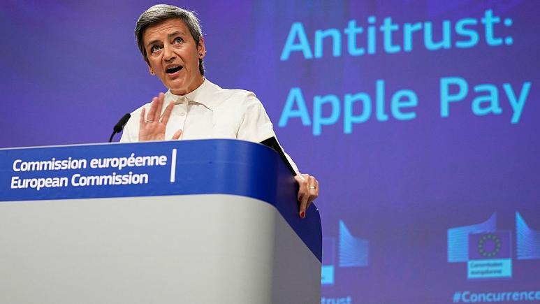 مارگرت وستاگر، کمیسر اروپا در حوزه تطبیق با عصر دیجیتال، با قرائت بیانیه کمیسیون اروپا در بروکسل، تاکید کرد که از نظر کمیسیون، سازنده گوشیهای تلفن همراه آیفون با ممانعت از کارکرد بسترهای آنلاین رقبای خود بر روی این گوشیها بر بازار کیف پولهای موبایل مسلط شده و از این موقعیت خود سوء استفاده میکند.