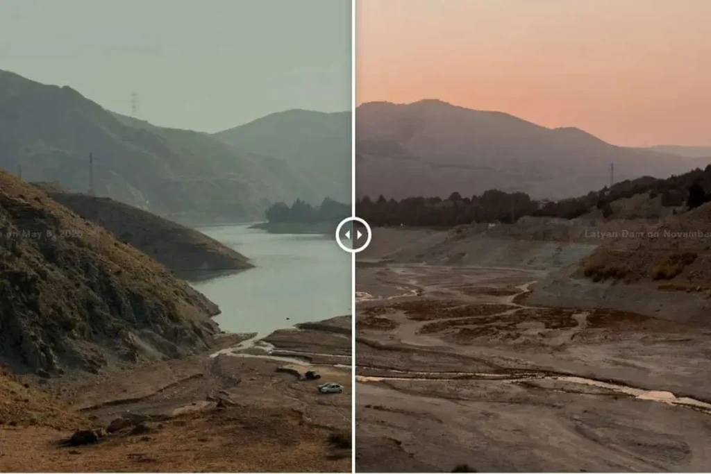 سال گذشته در چنین روزهایی سدهای حیاتی تهران ۳۸۱ میلیون مترمکعب آب داشتند عددی که اکنون تبدیل به ۱۷۰ میلیون مترمکعب شده. در این میان تصاویر دریافتی از ماهوارهها به وضوح خشکسالی ایران را تایید میکند؛ اگرچه این وضعیت مختص به ایران نیست، اما خالی بودن دریاچههایی مثل ارومیه و بختگان در تصاویر ماهوارهای به وضوح شدت خشکسالی ایران بر ایران را نشان میدهد و سبب شده که برخی رسانهها ایران را مواجه شده با ورشکستگی آب بدانند.