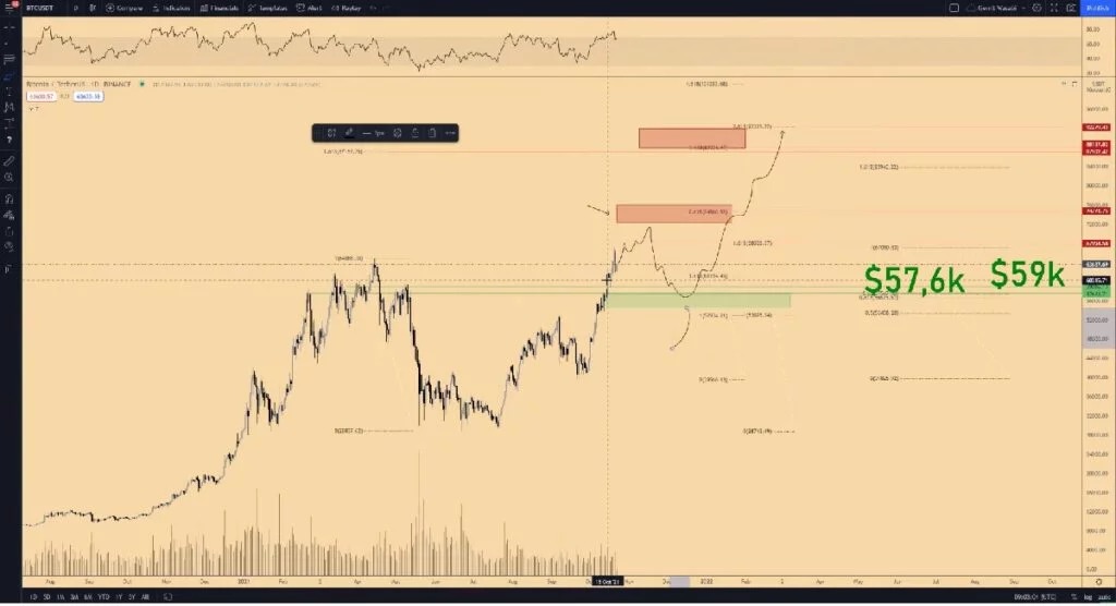 بر اساس ابزار توسعه فیبوناچی، بالاترین سطح قبلی، کف قبلی، نکات مهم و سطوح حیاتی سطح ۵۷۰۰۰ دلاری جایی است که باید به آن توجه کنیم. بنابراین، کل محدوده ۵۷۰۰۰ تا ۵۹۰۰۰ دلار که اینجا به دست آوردیم مناطقی هستند که امیدوارم پایدار بمانند تا حرکت حفظ شود.