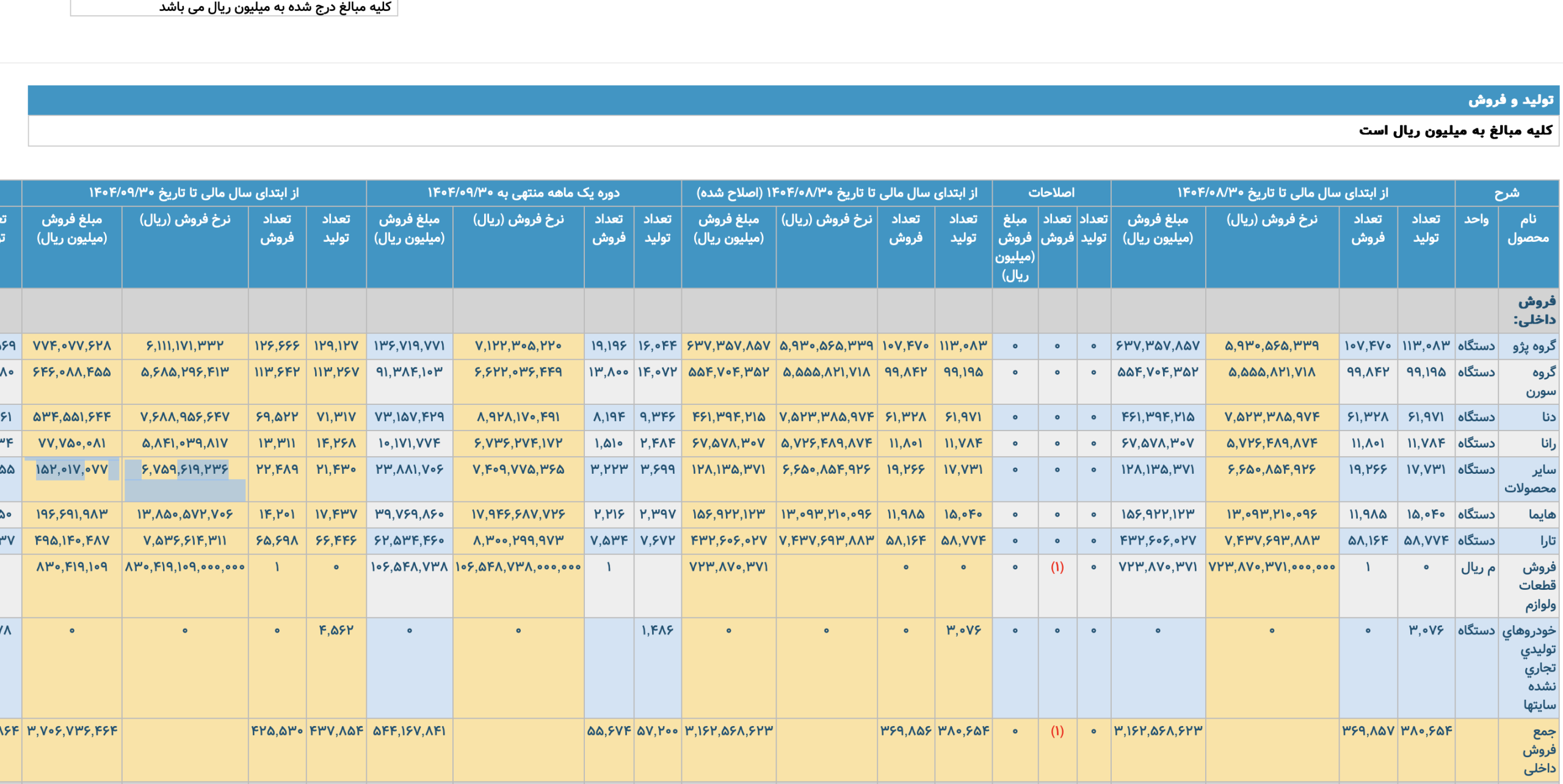 براین اساس طبق آمار کدال، شرکت ایران خودرو توانسته در آذر ۱۴۰۴، ۵۷ هزار و ۲۰۰ دستگاه خودرو و مجموعا در ۹ ماهه اول سال جاری، ۴۳۷ هزار و ۸۵۴ دستگاه تولید کرده است. این یعنی ایران خودرو در ۹ ماه امسال ماهانه به طور میانگین ۴۸ هزار و ۶۵۰ دستگاه خودرو تولید کرده است.