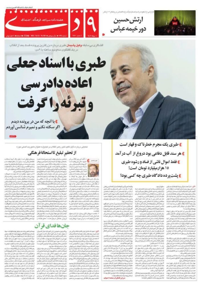 طبری ادعا میکند که اموال ناشی از فساد و رشوههای این پرونده حدود ۱۵ هزار میلیارد تومان است، و این مسئله بسیار مهم و نگرانکننده است. او بیحساب و بیکران به نظر میآید و در حین افشاگری به یکی از مقامات خواسته است که جان او را نجات دهد، و از این واقعیت که چقدر به او میدهند، آگاهی دارد.