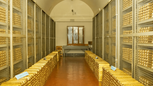 بانک ایتالیا اکنون پس از آمریکا و آلمان، سومین ذخیره طلای ملی بزرگ جهان را در اختیار دارد. ۲۴۵۲ تن طلای آن با قیمتهای فعلی تقریبا ۳۰۰ میلیارد دلار ارزش دارد که حدود ۱۳ درصد از تولید ناخالص داخلی ۲۰۲۴ این کشور را تشکیل میدهد.