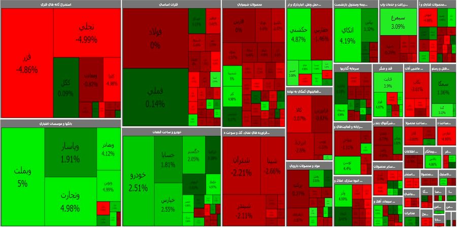 بیشترین خروجی پول حقیقی ها هم برای نمادهای فملی با ۵۹.۷ میلیارد تومان، فزر با ۵۲.۵ میلیارد تومان، فولاد با ۵۲.۱ میلیارد تومان، شتران با ۳۵.۱ میلیارد تومان و اتکای با ۲۰.۴ میلیارد تومان بود. بیشترین ورودی پول حقیقی ها هم برای نماد وتجارت با ۲۳.۲ میلیارد تومان، وبملت با ۲۰.۳ میلیارد تومان، ونوین با ۸.۶ میلیارد تومان، حکشتی با ۷.۲ میلیارد تومان و وآذر با ۶.۳ میلیارد تومان بود.
