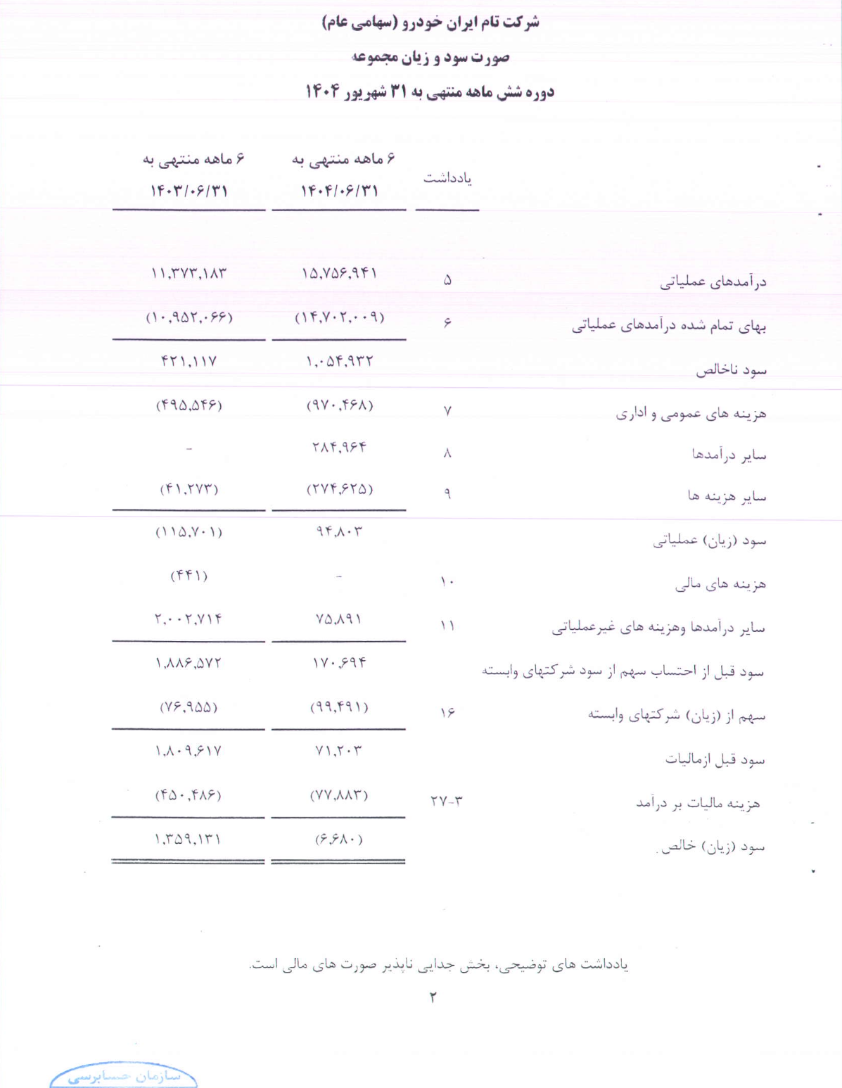 شرکت تام ایران خودرو علی رغم افزایش درآمد مالیاتی و سود عملیاتی به زیان خالص همراه شده است.