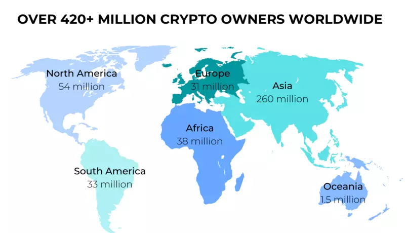 با رشد این صنعت در سراسر جهان، تعداد کاربرانی که از ارزهای دیجیتال برای مبادلات، سرمایهگذاری و جابهجایی پول استفاده میکنند سالانه در حال افزایش است. در ادامه، پراکندگی جغرافیایی مالکیت ارز دیجیتال در میان شهروندان کشورهای مختلف بررسی خواهد شد.
