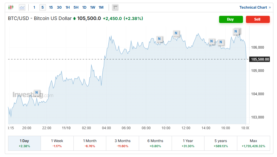 سهام MSTR پس از بازگشت بیتکوین به بالای ۱۰۶ هزار دلار، ۳.۲ درصد رشد را تجربه کرد.