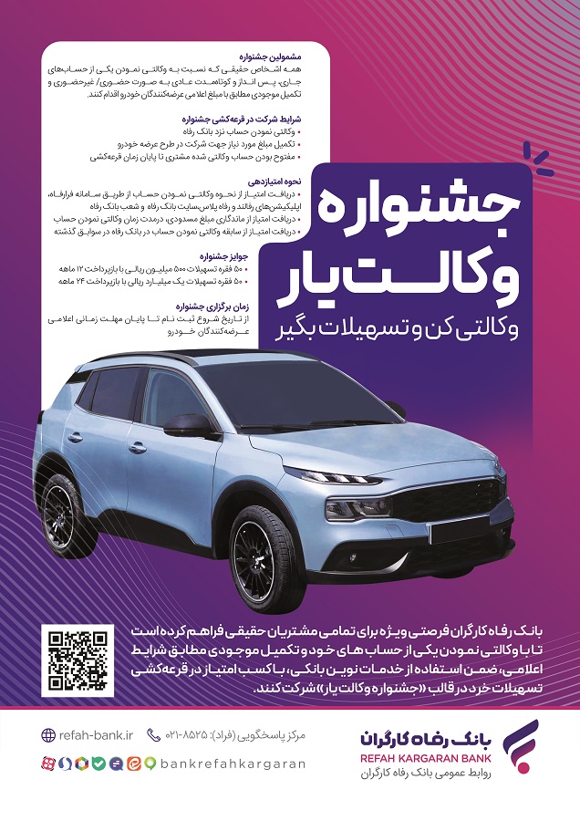 حسابهای خود را نزد بانک رفاه کارگران وکالتی کنید، از جوایز جشنواره “وکالتیار” بهرهمند شوید