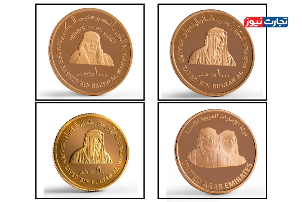 اما از دهه ۱۹۷۰ و ۱۹۸۰، مجموعهای از سکههای طلای یادبود با عنوانهای اتحاد امارات (۱۹۷۱)، سالهای ملی و سازندگی، سکههای طلایی یادبود شیخ زاید، سکههای اختصاصی بانک مرکزی برای مناسبتهای تاریخی منتشر کرد. این سکههای طلای یادبود، به جای حضور گسترده در معاملات روزمره، عمدتاً کارکرد نمادین، کلکسیونی و هدیهای پیدا کردند و در بازارهای منطقهای نیز با نقدشوندگی خوبی معامله شدند.