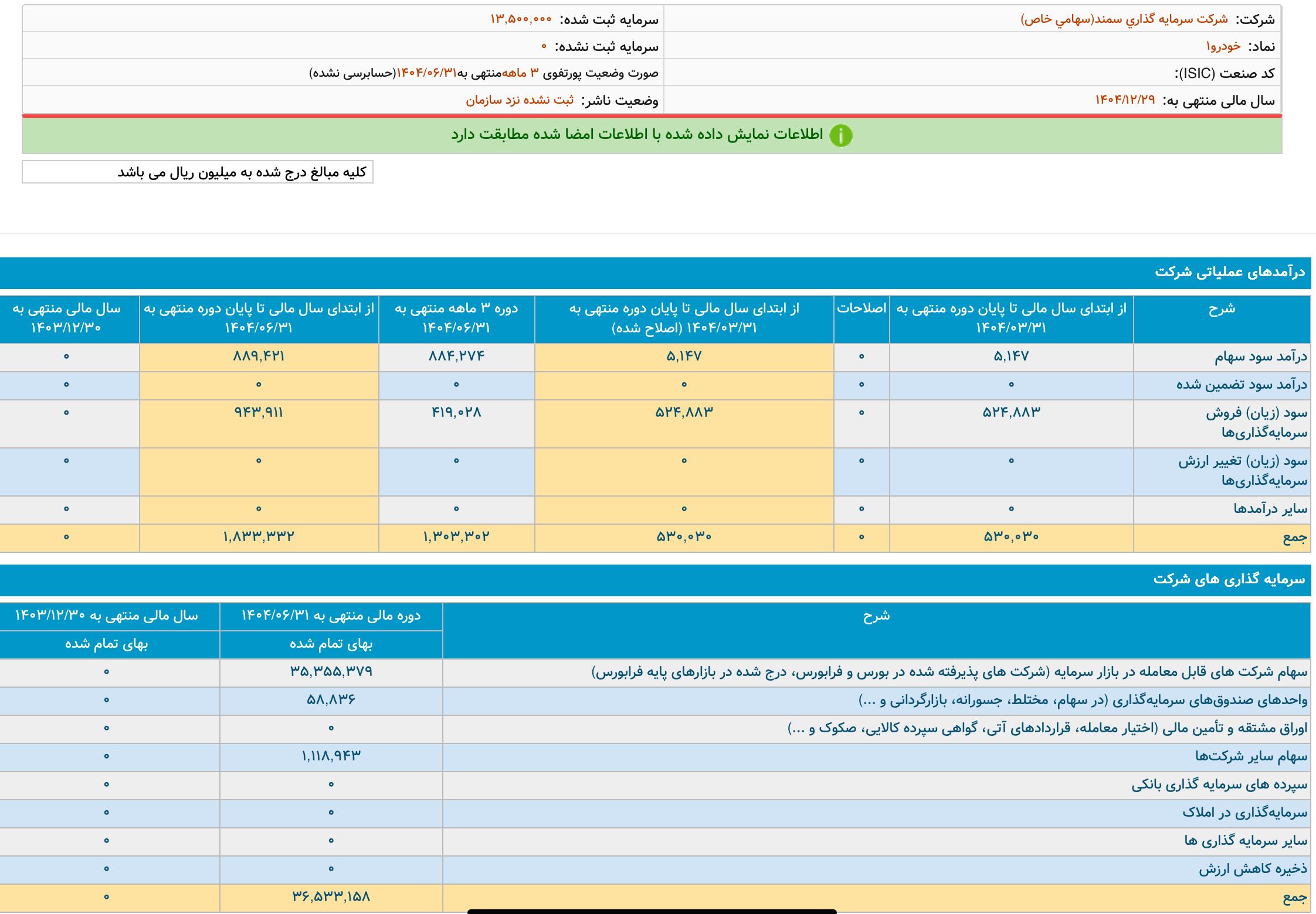 به گزارش خط بازار؛ شرکت سرمایه گذاری سمند در سال جاری بیش از ۱۸۳ میلیارد تومان درآمد عملیاتی داشته است.