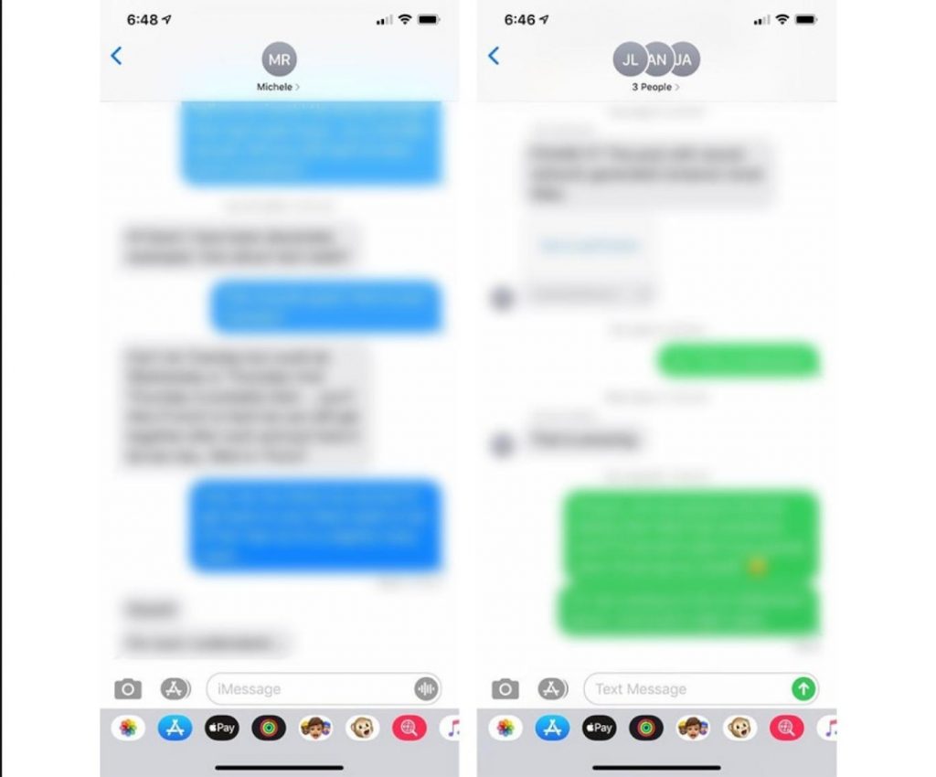 به گزارش خط بازار، وقتی دو آیفون به یکدیگر پیامک میدهند، متنشان آبی میشود؛ اما اگر کسی پیامکی از یک کاربر اندروید دریافت کند، پیامها سبز نشان داده میشوند. این سیستم، دستکم تا حدودی، برای این است که آیمسیجها، که از طریق اینترنت ارسال میشوند، و پیامکهای مرسوم از هم تفکیک شوند.