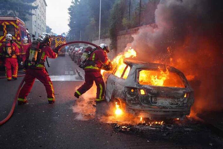 دومین شب آشوب در فرانسه/ معترضان اتوبوس و خودرو آتش میزنند