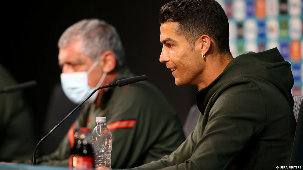 رونالدو ۳۶ ساله روز دوشنبه ۲۴ خرداد (۱۴ ژوئن) در کنفرانس خبری پیش از بازی پرتغال مقابل مجارستان در بوداپست، بطریهای کوکاکولا را از روبروی خود برداشت و در ادامه با بالا بردن یک بطری آب به پرتغالی گفت: «آگوا» [به معنی آب].