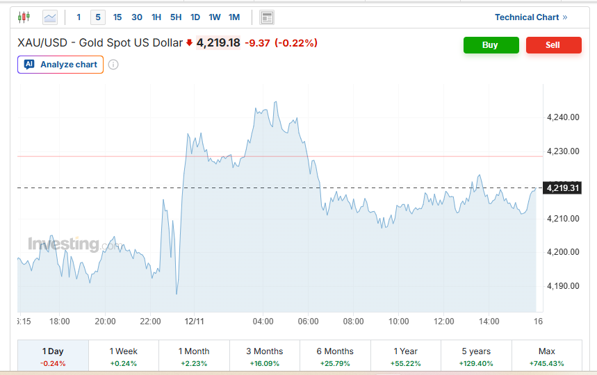 یکی از عوامل اصلی رشد قیمت طلا در بازار داخلی، ماندگاری اونس جهانی طلا در سطح ۴۲۰۰ دلار است. در حال حاضر، اونس جهانی طلا با رقم ۴۲۱۹ دلار معامله میشود که این سطح قیمتی برای بسیاری از فعالان بازار طلا نشانهای از احتمال ادامه روند صعودی است. افزایش مداوم قیمت طلا در بازار جهانی باعث شده تا طرفداران این فلز گرانبها امیدوار به ادامه رشد قیمتها در بازار داخلی باشند.