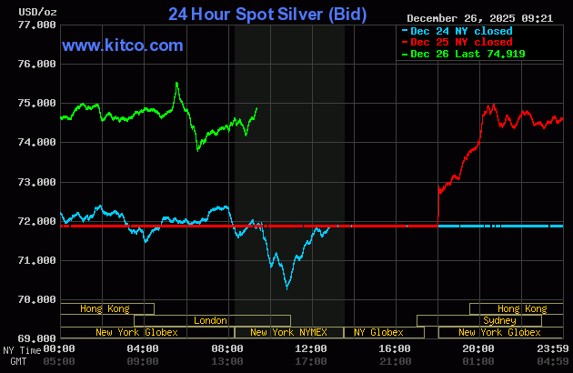قیمت طلای فوریه با رشد ۵۳ دلار و ۵۰ سنت به ۴۵۵۷ دلار و ۴۰ سنت رسید و پیش‌تر در معاملات شبانه، رکورد جدید ۴۵۶۲ دلار و ۷۰ سنت را به ثبت رسانده بود. نقره تحویل مارس نیز با افزایش ۳ دلار و ۱ سنت، به ۷۴ دلار و ۶۷ سنت رسید و در شب از سقف جدید ۷۵ دلار و ۸۴ سنت عبور کرده بود.