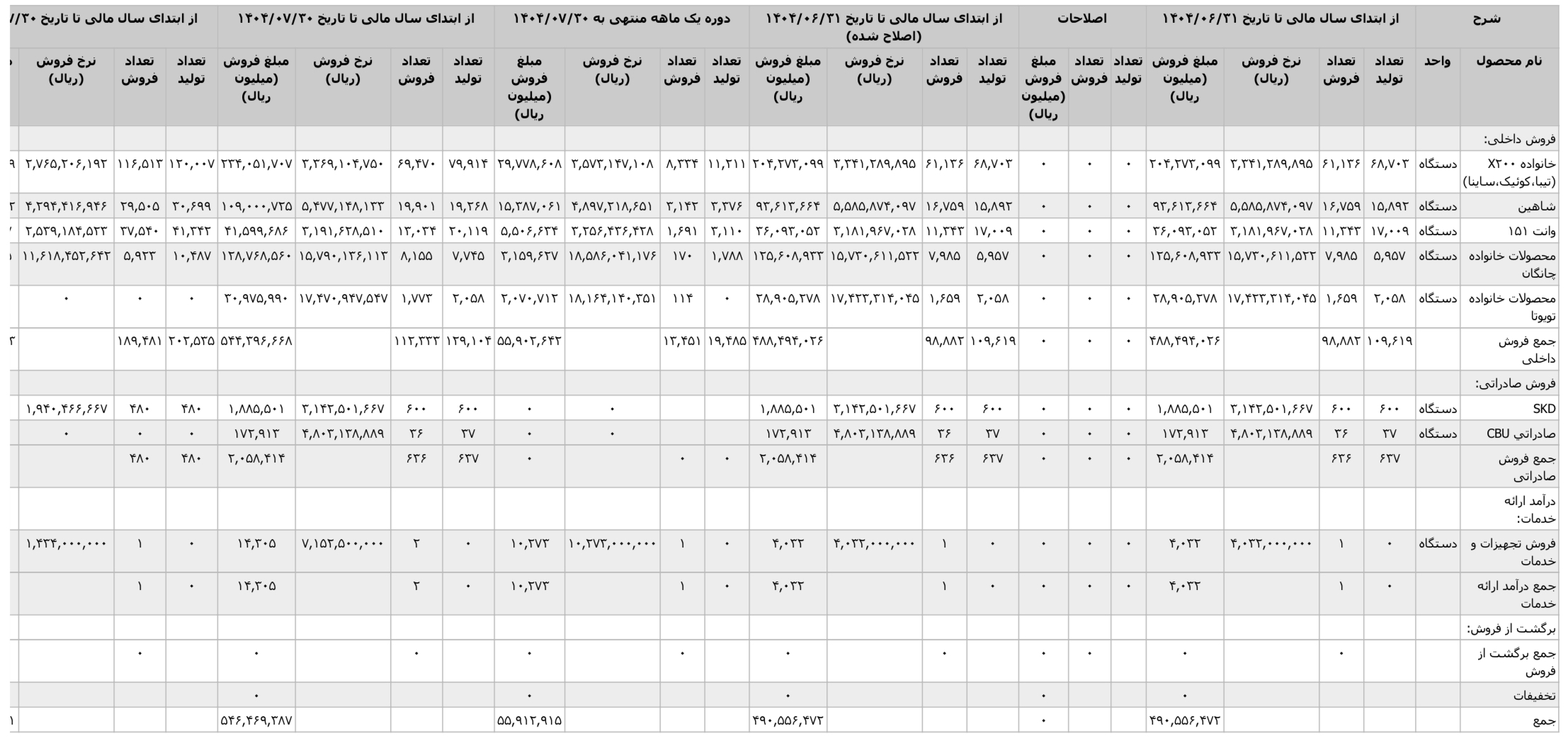 اولین شاخص بررسی میزان تولید این گروه خودروسازی در سال جاری است. طبق آمار رسمی کدال تولید این گروه خودروسازی تا پایان مهرماه ۱۴۰۴، به میزان ۱۲۹ هزار و ۱۰۴ دستگاه بوده که این میزان در مدت مشابه سال گذشته ۲۰۲ هزار و ۵۳۵ دستگاه بوده است. این یعنی حدود ۳۶ درصد کاهش تولید.