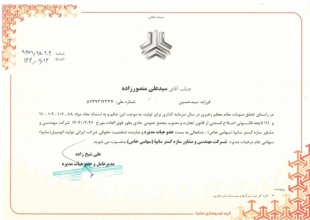 براین اساس سید علی منصورزاده به عنوان عضو جدید هیئت مدیره به سازه گستر اضافه شد. منصورزاده جز مدیران سازه گستر می باشد.