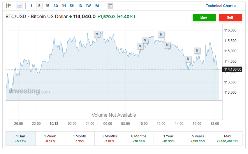 بازار جهانی رمزارزها پس از شوک جمعه که به پاکشدن صدها میلیارد دلار از ارزش بازار منجر شد، امروز کوشید تعادلی شکننده، اما قابلپیگیری بسازد؛ تعادلی که در نمودار بیتکوین بهصورت ورود بامدادی به کانال ۱۱۵ هزار دلار، لمس سقف همان کانال در نیمه نخست و سپس چرخش نزولی تا محدوده ۱۱۴ هزار و ۱۳۰ دلار در نیمه دوم روز دیده شد.