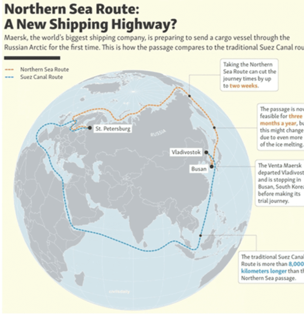 رقابت جهانی بر سر مسیرهای ترانزیتی دریایی، به نقطه عطف تازهای رسیده است. چین و روسیه با بهرهگیری از فرصتهای ناشی از ذوب یخهای قطبی، مسیر دریایی شمال را به کریدوری نوین برای تجارت بین آسیا و اروپا بدل کردهاند. این مسیر که با نام «جاده ابریشم یخی» شناخته میشود، حدود ۷۰۰۰ کیلومتر از مسیر سنتی کانال سوئز میکاهد و زمان حملونقل کالا را تا ۴۰ درصد کاهش میدهد.شرکت روساتم به تازگی اعلام کرده است که نقشه راه جدید برای ایجاد کریدور پایدار و مجهز به زیرساختهای لجستیکی پیشرفته و فناوریهای نوین تدوین شده است. سرمایهگذاریها در بنادر شمالی روسیه، ناوگان یخشکن و تجهیزات مدرن، بخشی از تلاش کرملین برای تسلط بر این مسیر است.چین از سال ۲۰۱۸ با سیاست قطب شمال و طرح «راه ابریشم یخی» به دنبال توسعه مسیرهای دریایی قطبی بوده است و اکنون، با تحقق بخشی از این برنامه، جایگاه خود را به عنوان بازیگر کلیدی ترانزیت بینقارهای تثبیت کرده است. حرکت نمادین کشتی باری «استانبول بریج» از بندر نینگبو چین به اروپا، از مسیر قطبی، نشان میدهد که این کریدور عملیاتی شده و ظرفیتهای آن در حال بهرهبرداری است.تجربه جهانی نشان میدهد که مسیرهای قطبی، هرچند هنوز مکمل کانال سوئز هستند، اما بهتدریج سهم قابل توجهی از تجارت دریایی آسیا-اروپا را به خود اختصاص خواهند داد. افزایش حجم حملونقل مسافر و کالا در مسیر شمالی روسیه، و علاقه شرکتهای بزرگ کشتیرانی مانند مرسک، نشانههایی از اهمیت رو به رشد این مسیر است.