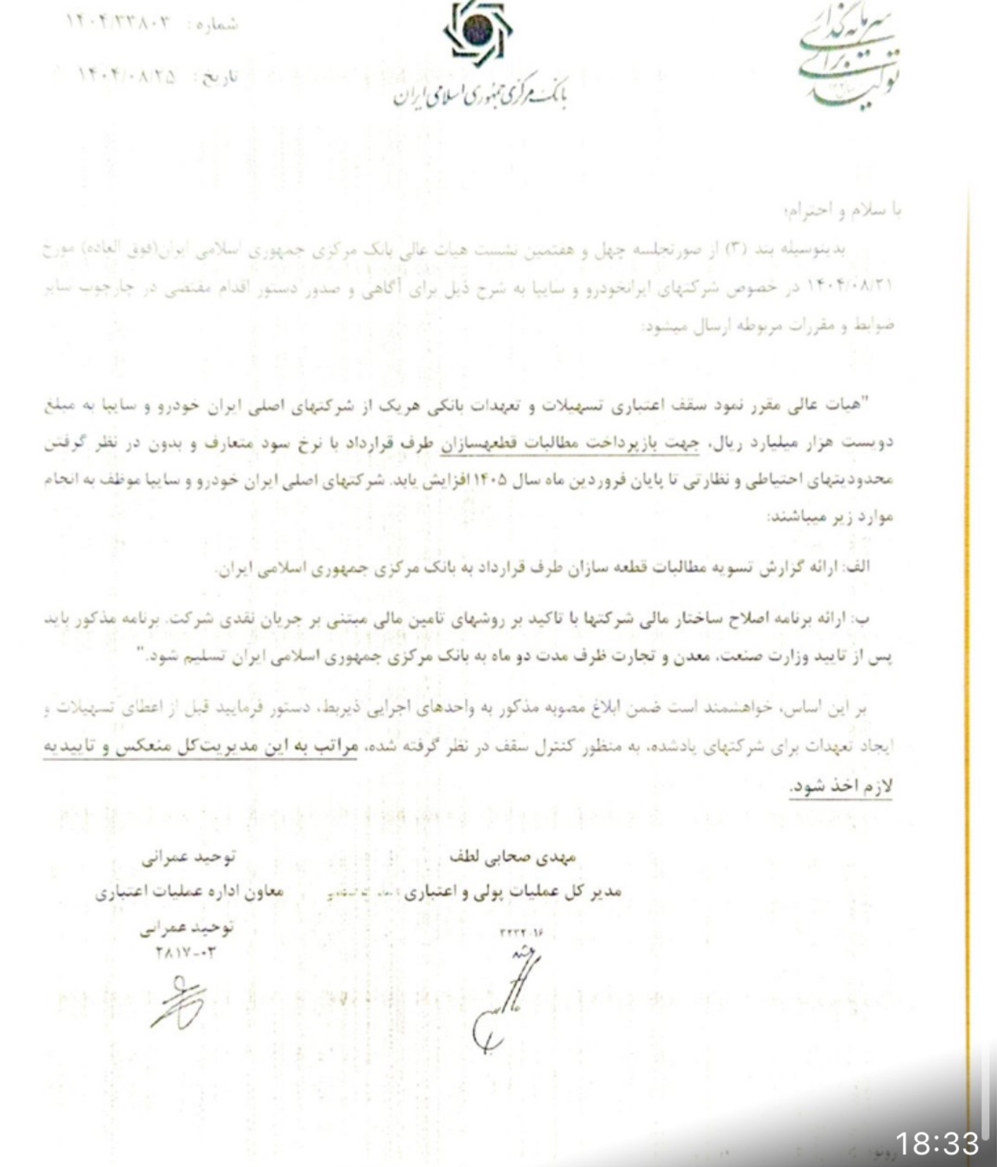 ۴- روز گذشته بانک مرکزی مقرر نمود سقف اعتباری تسهیلات و تعهدات بانکی ایران خودرو و سایپا جهت بازپرداخت مطالبات قطعه سازان تا ۲۰ همت افزایش یابد. این شرایط حمایتی به دلیل مشکلات مالی و چک های برگشتی سایپا، بُرد عظیم برای ایران خودرو به شمار می آید. این در حالی است که طی ۹ ماه اخیر همواره ایران خودرو در صدر پرداخت مطالبات قطعه سازان بوده است. در سال جاری نظام موفق تامین مالی ایران خودرو برگ برنده این شرکت و کمک حال شرکت های قطعه سازی بوده است.