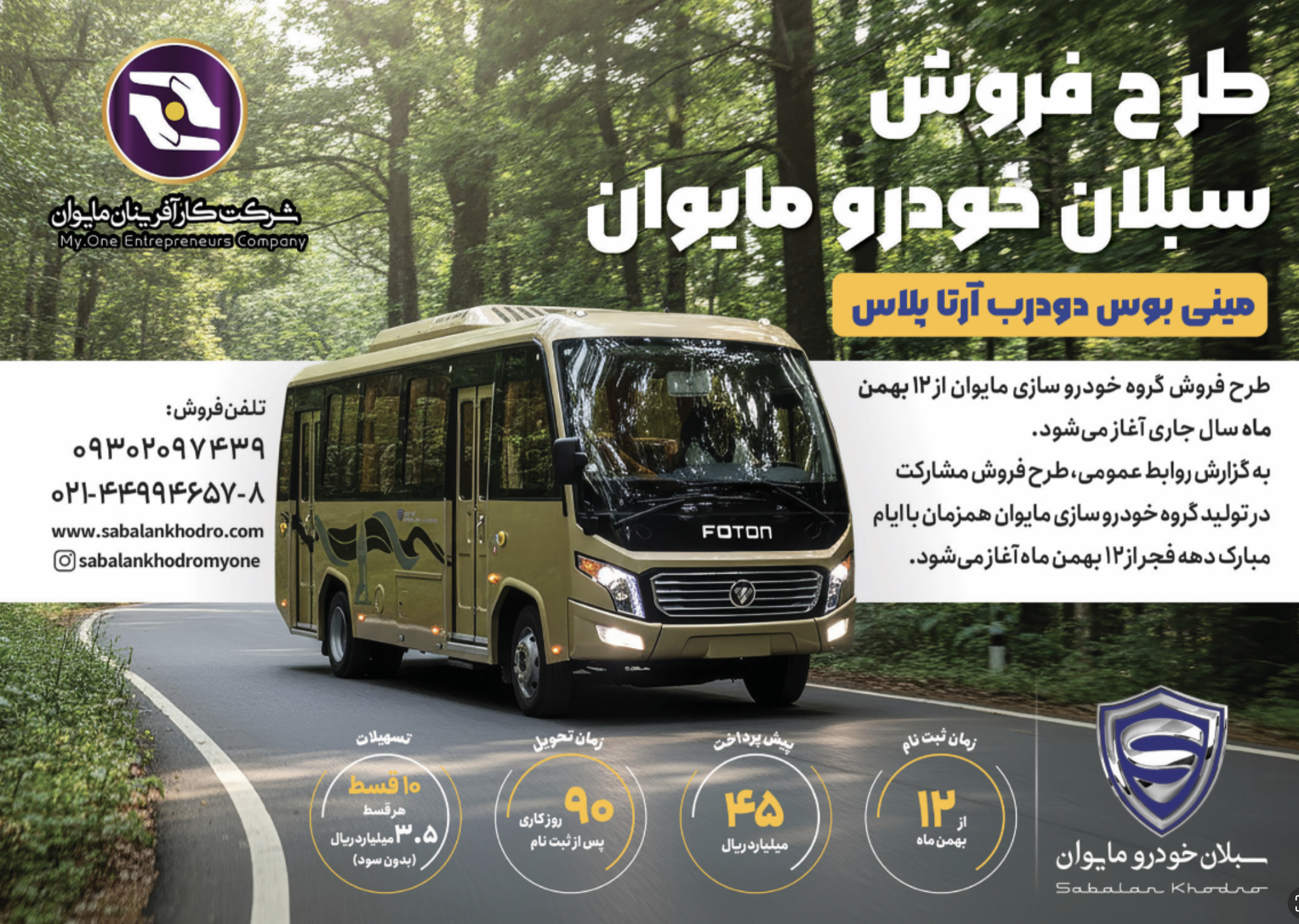 به گزارش خط بازار؛ «خودروسازی سبلان خودرو مایوان» فروش اولین خودرو دو درب خود را آغاز کرد. «آرتا پلاس» یک مینی بوس دو درب است که فروش آن در بهمن ماه ۱۴۰۴ آغاز شده است. شرایط فروش این محصول به شرح ذیل است: