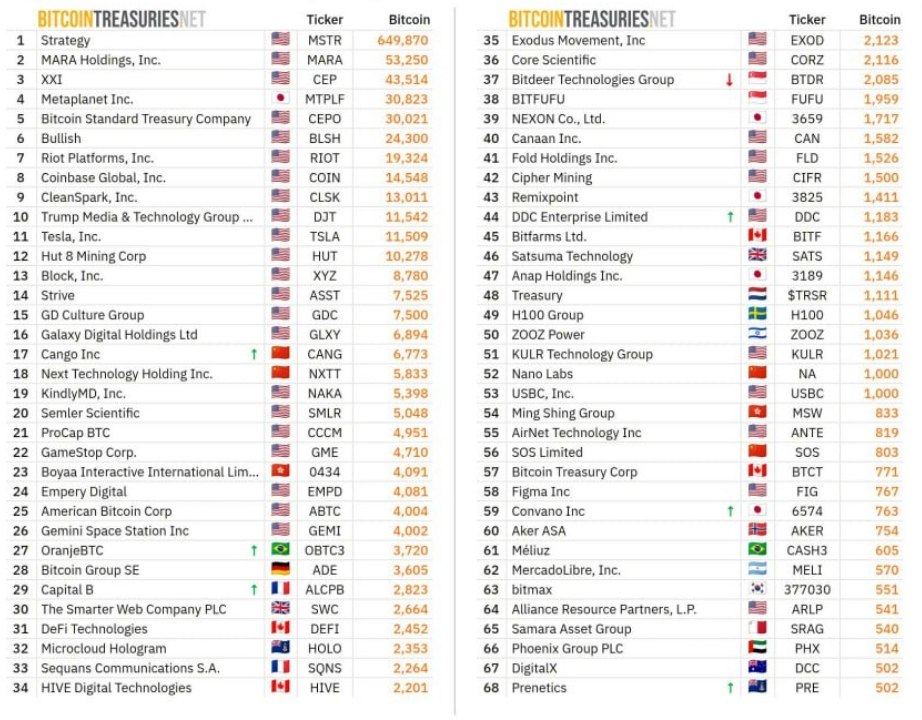 ۱۰۰ شرکت سهامی عام در مجموع بیش از ۱,۰۵۸,۵۰۰ بیتکوین در اختیار دارند.
