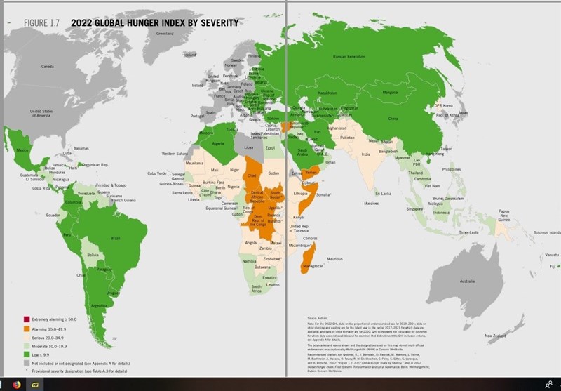 به گزارش خط بازار؛ موسسه غیردولتی «کانسرن ورلدواید» یک سازمان بشردوستانه بینالمللی مستقر در ایرلند است که شاخصی به نام شاخص گرسنگی جهانی را تعریف کرده و با استفاده از این شاخص وضعیت کشورهای در حال توسعه را ازنظر گرسنگی و سوءتغذیه میسنجد.