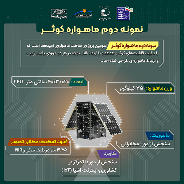 سه ماهواره سنجشی «ظفر۲»، «پایا» و «نمونه دوم کوثر» که به ترتیب توسط بخش دانشگاهی، دولتی و خصوصی ساخته شدهاند، با مأموریت تصویربرداری، دادههای کاربردی برای کشاورزی فراهم میکنند؛ از رصد زمین و محصولات گرفته تا پیشبینی شرایط جوی و بهینهسازی آبیاری و مصرف نهادهها. این تصاویر میتوانند خسارتهای ناشی از خشکسالی و آفات را کاهش داده و بهرهوری و سود کشاورزان را افزایش دهد.
