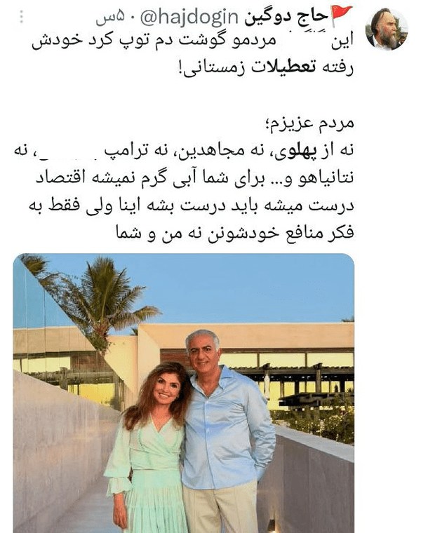 به گزارش خط بازار؛ رضا پهلوی در حالی که از سه هفته قبل برای گذراندن تعطیلات کریسمس به همراه خانواده‌اش ظاهراً به یکی از جزایر یونان سفر کرده است برای اغتشاش در ایران پیام می‌دهد.