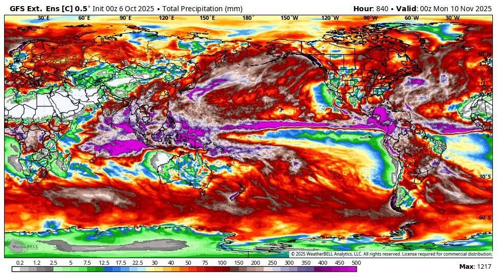 نقشه بارش یک ماه آینده در سرتاسر کره زمین