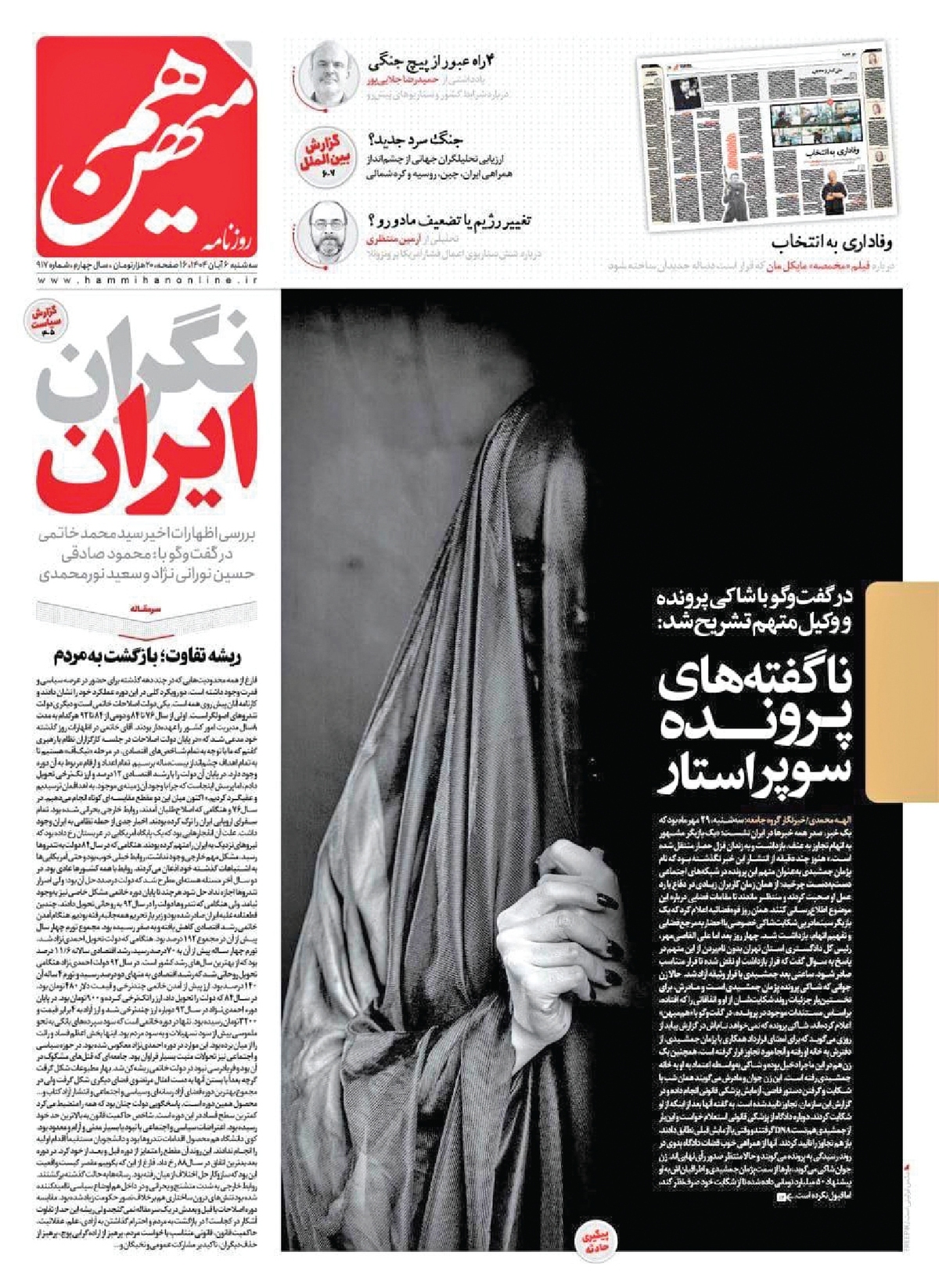 روزنامه هممیهن که همیشه منتقد قانون حجاب و طرفدار فتنه ززآ بود حالا یهو پای پروندهتجاوز که میاد وسط عکس خانم باحجاب را میگذاره، البته حجاب چادر با لاک جیغ؛ این اگه اسمش بیشرفی نیست پس چیه؟!