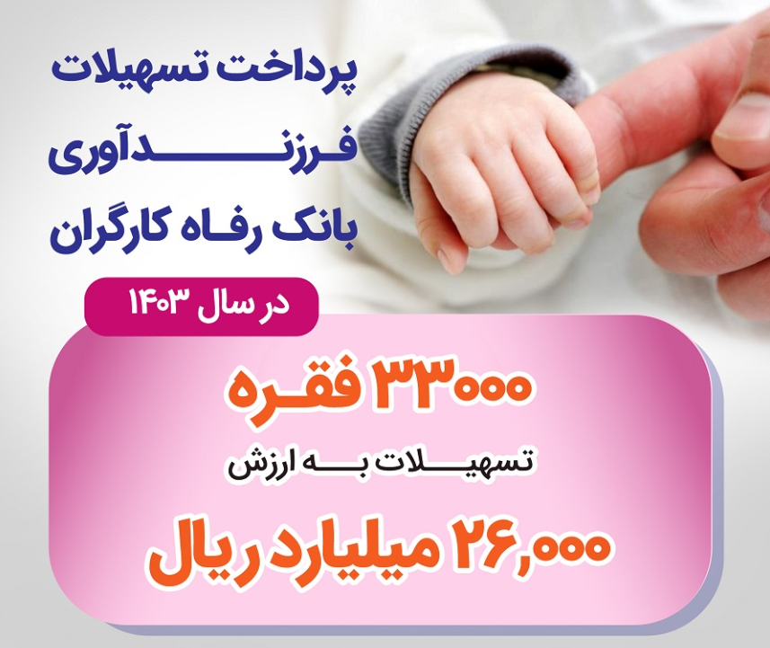 پرداخت بیش از 26 هزار میلیارد ریال تسهیلات قرض‌الحسنه فرزندآوری توسط بانک رفاه کارگران