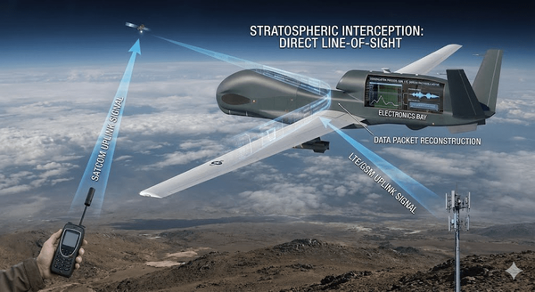 تحلیل فنی: پهپادهایی مثل گلوبال هاوک به دلیل پرواز در ارتفاع بسیار بالا (استراتوسفر)، در خط دید مستقیم با آنتن‌های Uplink ماهواره‌ای قرار می‌گیرند.