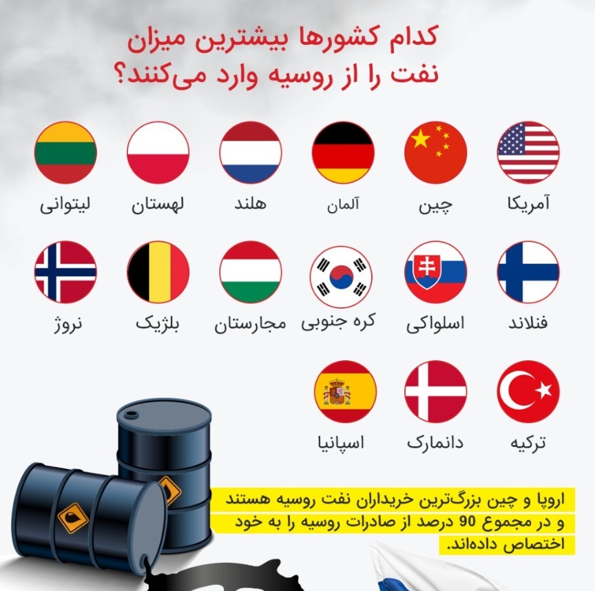 اینفوگرافیک زیر کشورهای را که بیشترین واردات نفت روسیه را دارند، نشان میدهد:
