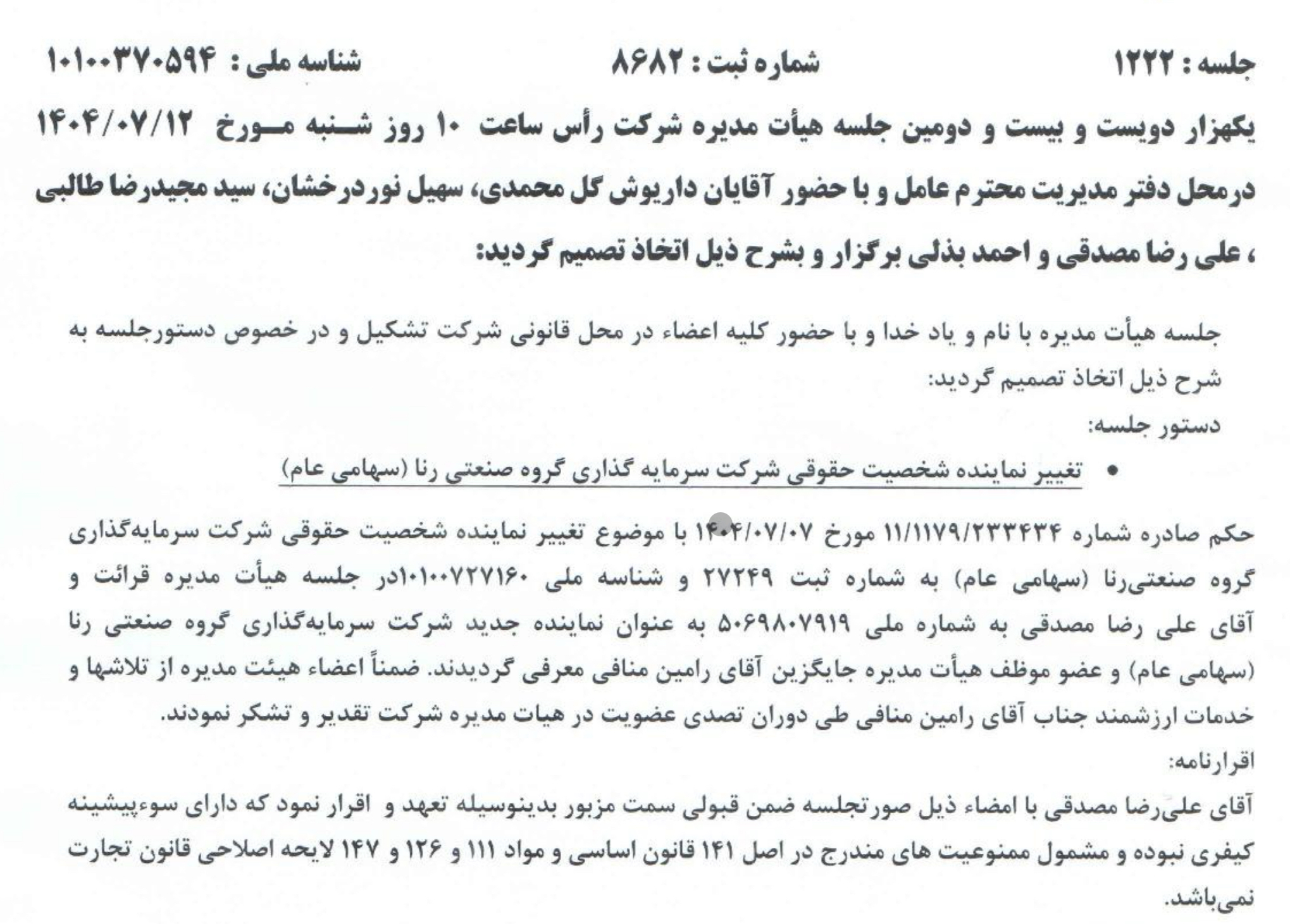 با انتصاب محمدحسن جبلی جوان در شرکت مگاموتور، علیرضا مصدقی مدیرعامل سابق، به نمایندگی از شرکت رنا به جای رامین منافی به عنوان عضو هیئت مدیره زامیاد منصوب شد.