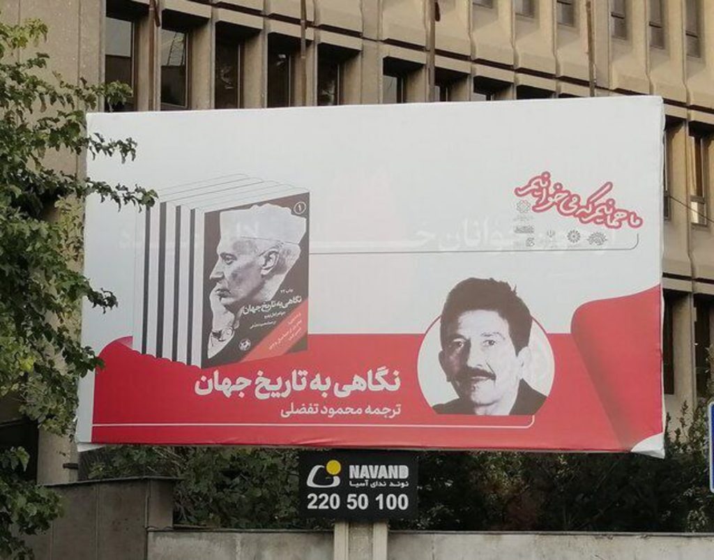 اخیراً در سطح شهر تهران بیلبوردهایی از تبلیغ کتاب«نگاهی به تاریخ جهان» نوشته«جواهر لعل نهرو» نصب شده است. جالب اینجاست که در این تبلیغات شهری، به جای ارائه تصویر مترجم این کتاب یعنی«محمود تفصلی»، به اشتباه عکس و تصویری از «احمد تفصلی» استفاده شده است که از قربانیان قتل های زنجیره ای در سال ۱۳۷۵ می باشد توسط عوامل خودسر امنیتی به قتل رسید.