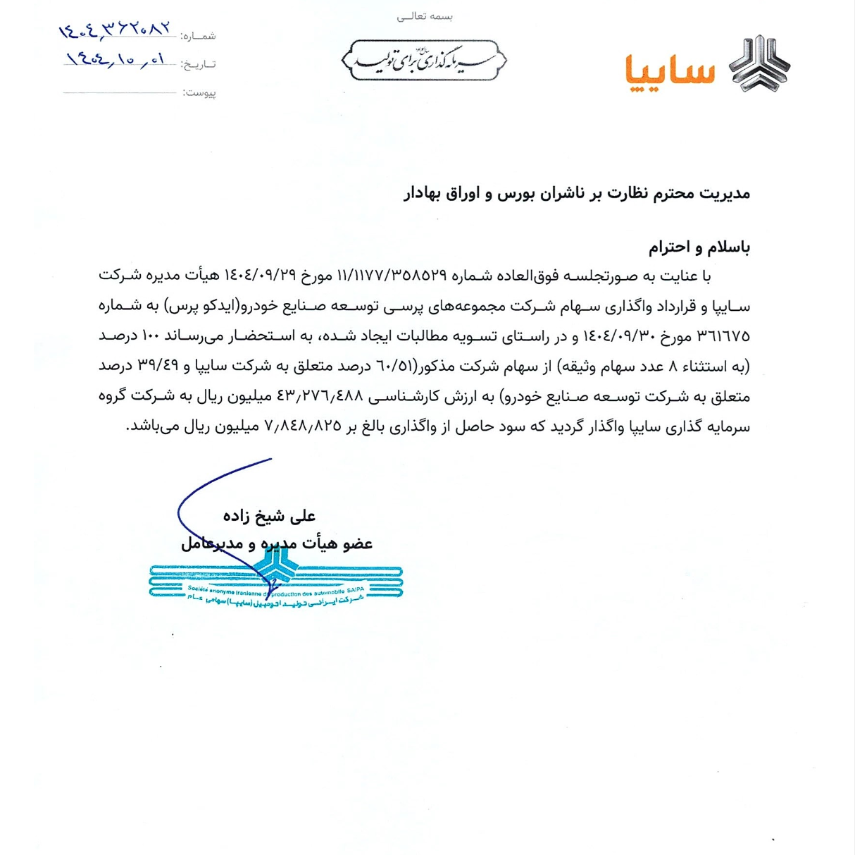 به گزارش خط بازار؛ اخبار منتشر شده در کدال حاکی از یک واگذاری دیگر در سایپا است.