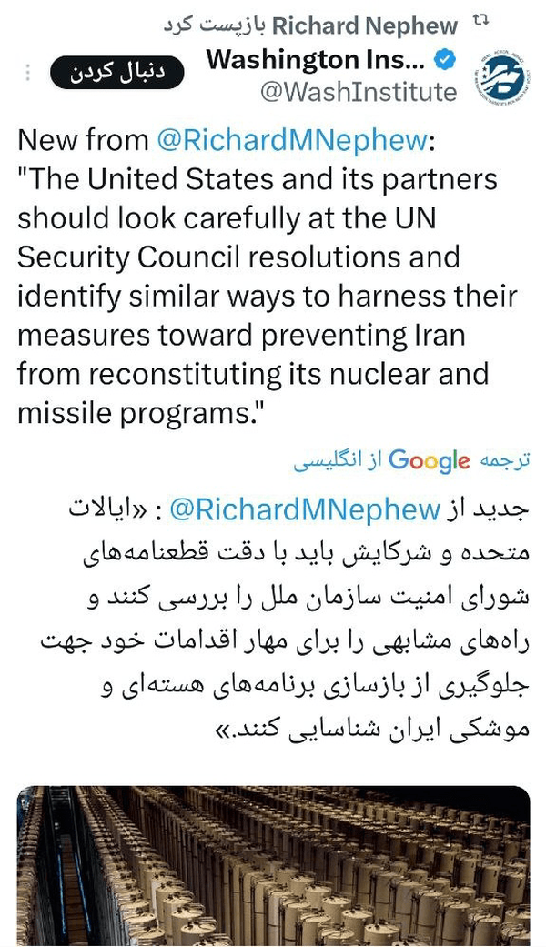 وی همچنین تصریح میکند که بازگشت تحریمهای شورای امنیت، بهخودیخود قدرت اجرایی ندارد و بدون اجماع جهانی راه به جایی نمیبرد و بسیاری از سازوکارها فراموش شده که برای اینکه دوباره اجرا شود قدرت هماهنگی خاصی را میطلبد و برای همین چنین مقالهای را به نگارش درآورده است و از یک کمپین هماهنگسازی صحبت میکند.